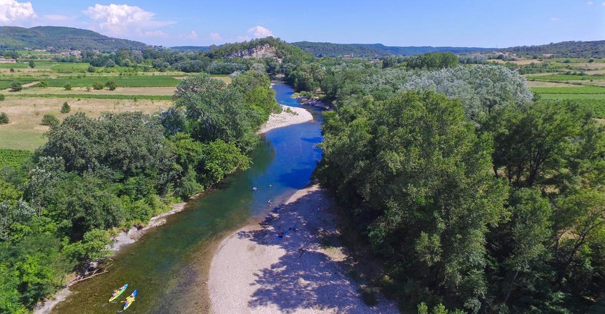 La rivière La Cèze, qui baigne le joli village de Goudargues, est accessible directement depuis le camping Saint-Michelet, qui y dispose d’une plage privée.