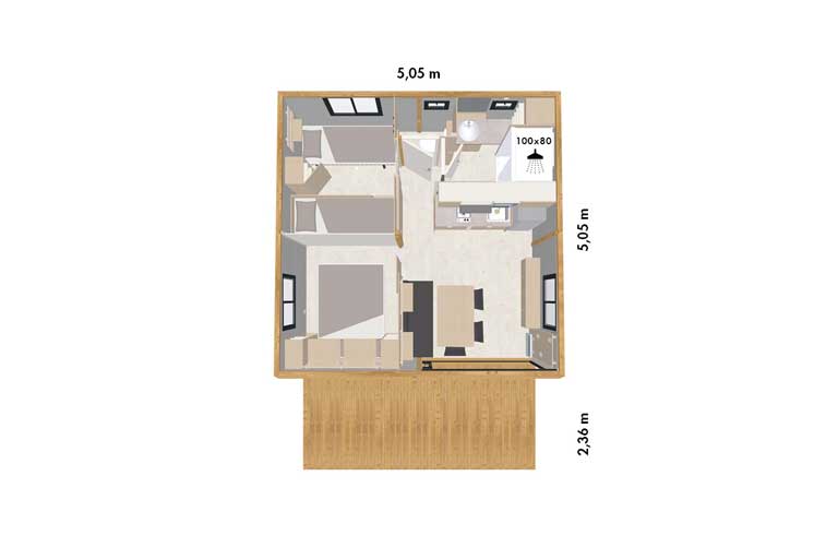 Le Morea est un chalet compact et organisé, il dispose de deux chambres indépendantes et peut accueillir jusqu’à cinq personnes au sein de notre camping 4 étoiles dans le Gard.