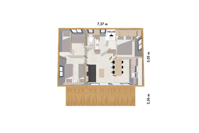 Le Portland est un chalet qui offre une grande capacité d’accueil grâce à ses 3 chambres.