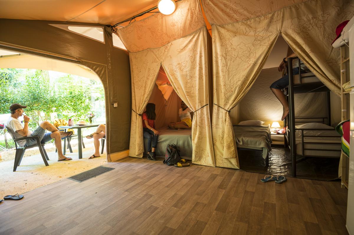 - Pas de tente supplémentaire sur l’emplacement et 1 seul véhicule par Bungalow toilé.