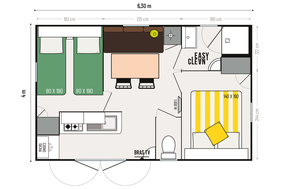 - Pas de tente supplémentaire sur l’emplacement et 1 seul véhicule par mobil-home.