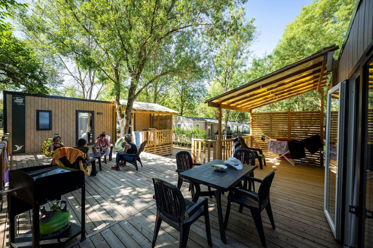 Réuni par une grande terrasse, ces 2 modèles de mobil-homes spécialement faits pour Flower, ont un équipement complet pour passer des vacances réussies en camping dans le Gard !